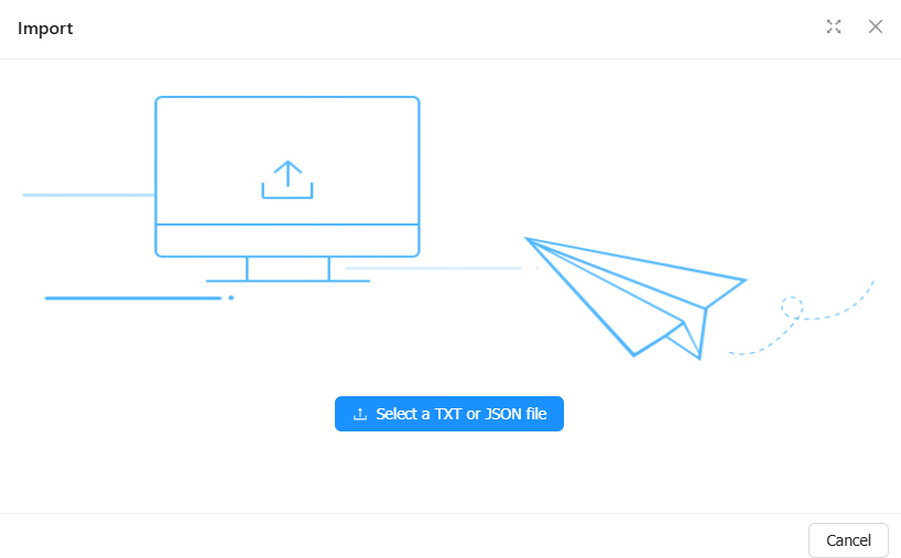 Step 2: Click Select a TXT or JSON file to upload a configuration file.