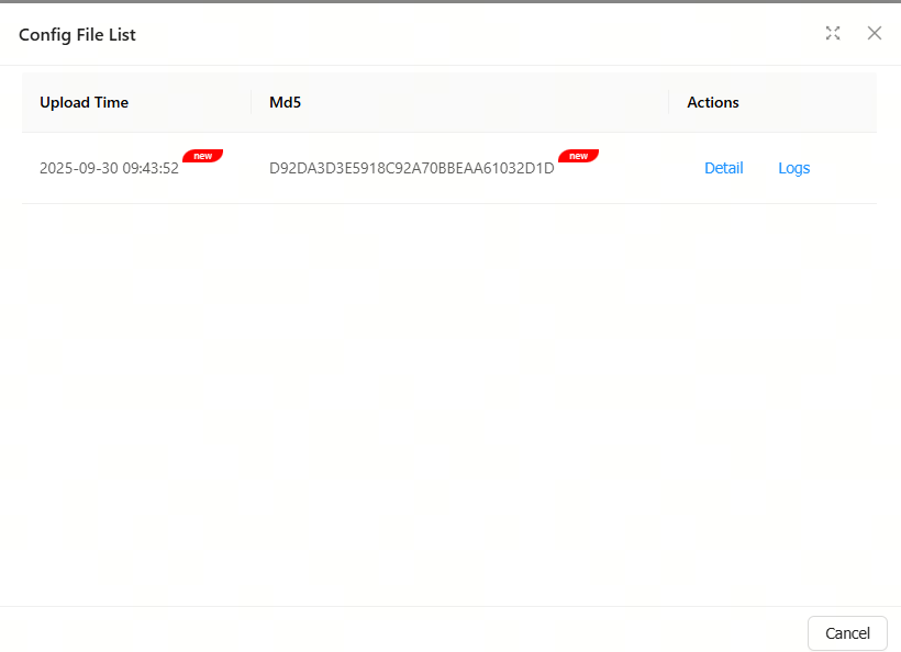 Click Config File List to check the configuration file list.