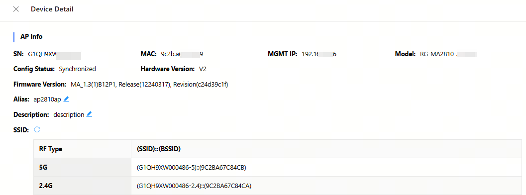 2. Support the display of BSSIDs corresponding to all 2.4 GHz/5 GHz SSIDs of the RG-MA2810.