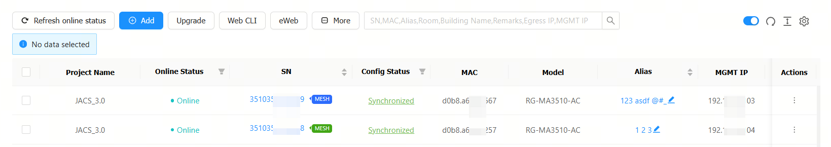 1. Support the management of RG-MA3510-AC and RG-MA3510-PE.